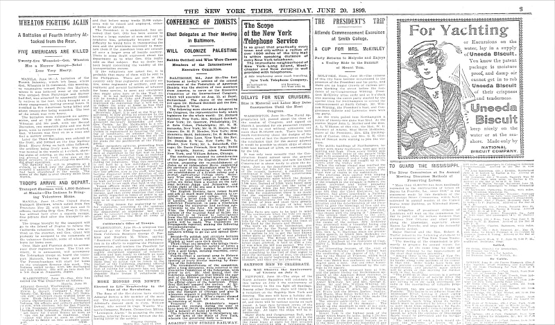 Ma torniamo alle parole e prendiamo, per esempio, il resoconto della conferenza annuale della Federation of American Zionists apparso sul quotidiano “New York Times” il 20 giugno 1899. La conferenza proponeva “the re-establishment of Judea as an independent State, suggesting the purchase of the Maccabean sites in Palestine, and the beginning of the work by Jewish Agricultural College there. […] The site to be purchased comprises about fifty acres, six miles from a station on the railroad between Jappa [sic!] and Jerusalem, and within sight of the sea and a large stretch of the Palestine coast” – la rifondazione della Giudea come Stato indipendente, suggerendo l’acquisto dei siti dei Maccabei in Palestina, e l’inizio dei lavori in loco da parte del Collegio Agricolo Ebraico. […] Il sito da acquistare comprende circa cinquanta acri [circa 20 ettari – n.d.r.], a sei miglia da una stazione ferroviaria sulla linea tra Giaffa e Gerusalemme, e con vista sul mare e su un ampio tratto della costa palestinese. Con “siti dei Maccabei” s’intendeva fare riferimento ai territori del Regno Asmoneo, uno Stato ebraico indipendente esistito per un centinaio d’anni (140-37 a.C.) sotto la dinastia degli Asmonei, la famiglia sacerdotale che aveva guidato la rivolta contro i Seleucidi, all’epoca dominatori della regione; nel 37 a.C. il regno fu conquistato dai Romani, che deposero la dinastia e nominarono re Erode il Grande.